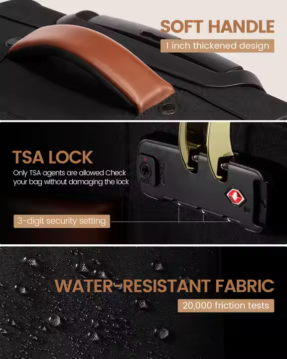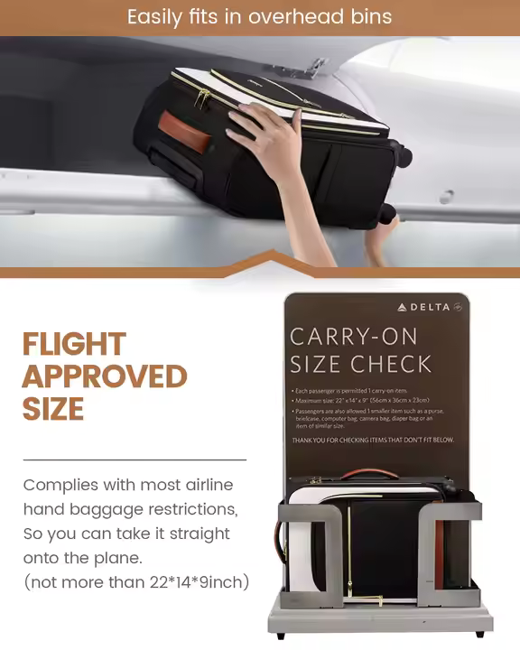 Capacity & Dimensions | Airline-approved carry-on size (~20″) with high interior volume |